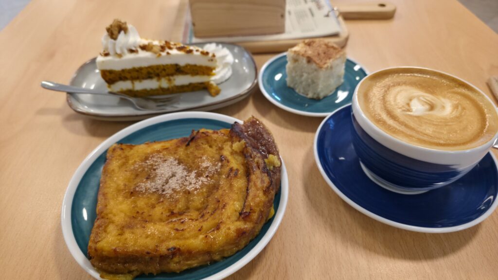 Im Café gegenüber soll es leckere Churros mit Schokolade geben. Na, das ist doch mal ne Ansage. Ich also rein ins Café. Aber welche Enttäuschung: Heute Vormittag machen sie keine. Dafür empfahl mir die Verkäuferin ein besonderes Gepäck, dass es nur in der Osterwoche gibt. Und um die gestern verbrauchten Reserven wieder aufzufüllen, gab es noch was richtig Gesundes. Was mit Möhren. Und Sahne. Und einem Ccl.