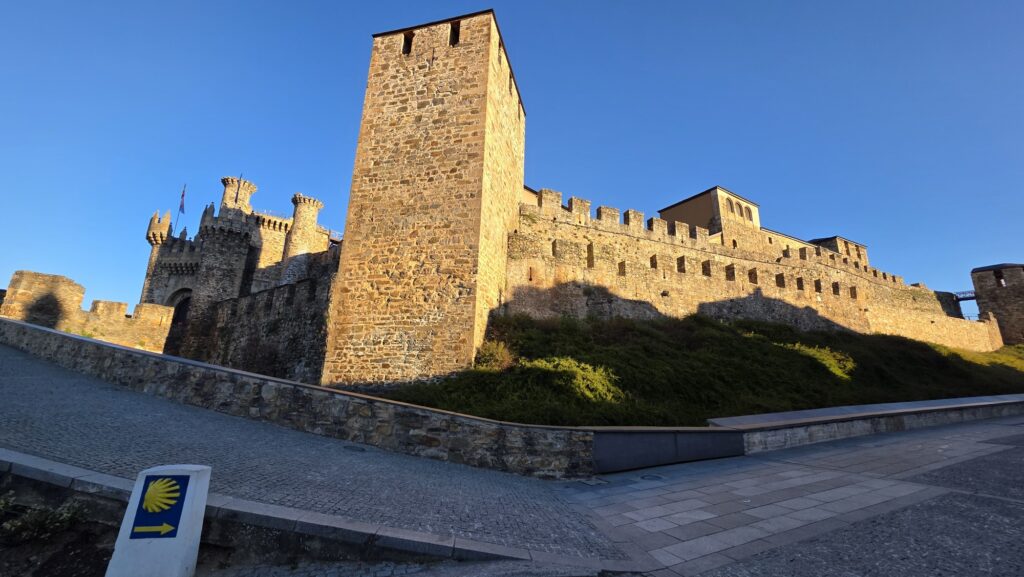 Na ja, zunächst habe ich einen der vielen Nothelfer des Caminos in Anspruch genommen. Mit der Frau, die mich mit dem Taxi schon vor zwei Jahren nach Ponferada gefahren hat, bin ich auch in diesem Jahr gefahren. Das hat nur deshalb geklappt, weil der andere Taxifahrer keine Zeit hatte. Bis zum Castillo hat sie mich gefahren.