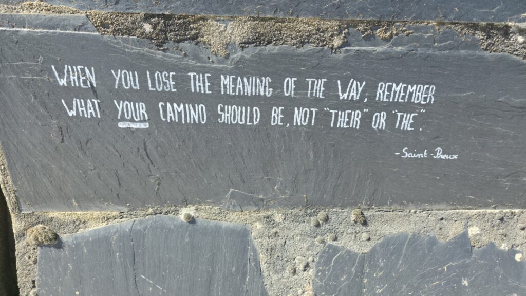 Komischerweise waren heute nicht viele Pilger auf dem Weg. Oder ich war einfach zu zeitig unterwegs. Am Weg findet man immer wieder solche mehr oder weniger sinnvollen Sinnsprüche. Ich habe es mal frei übersetzt