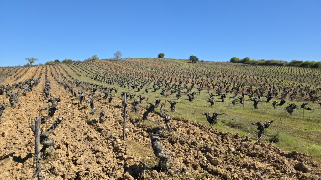 Wir sind hier im Weinanbaugebiet Bierzo. Hier wird überwiegend die alte Rebsorte Mencía angebaut. Das werden hochbewertete Weine. Müssen wir mal zu Hause probieren. Hier geht das ja nicht. Da komme ich ja am Vormittag nicht aus der Bodega heile wieder raus.