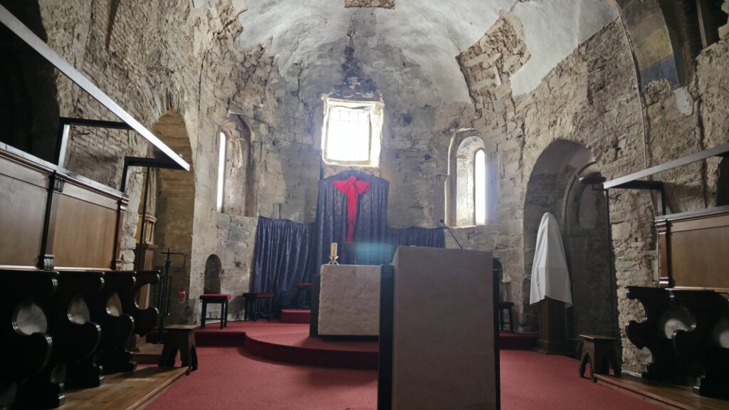 In Rabanal habe ich mir bei den Benediktinern eine Stempel geholt und eine kurze Pause in der alten Kirche gemacht. Mit dem Pater, der aus Köln kommt, habe ich einen kurzen Plausch gehalten. Für ihn ist es auch schwierig Spanisch zu lernen. Ich empfahl ihn doch mal den Jakobsweg zu gehen. Aber noch muss er hier seinen Dienst tun.